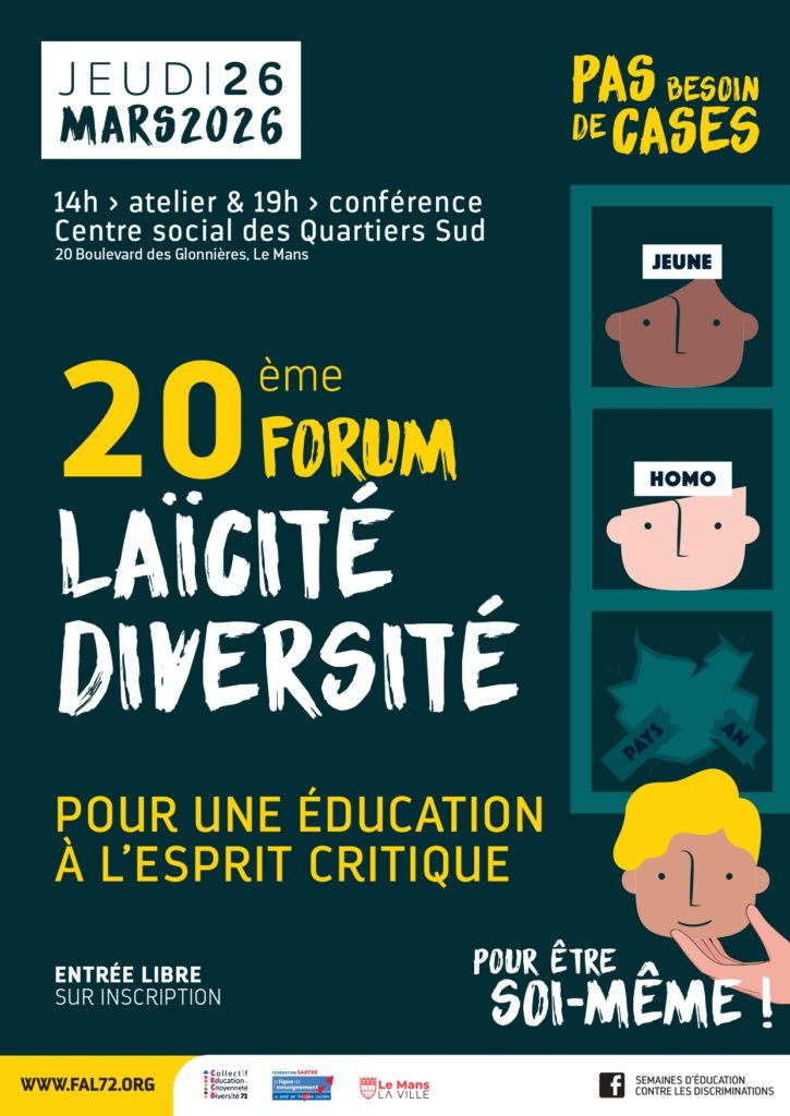 Comme chaque année, au mois de mars, le Collectif d’éducation à la citoyenneté et à la diversité de la Sarthe, composé d’une quarantaine d’associations, coordonnée par la Ligue de l’enseignement – FAL 72, propose de mettre en lumière le travail permanent qui est fait sur le territoire en matière de lutte contre les discriminations.
